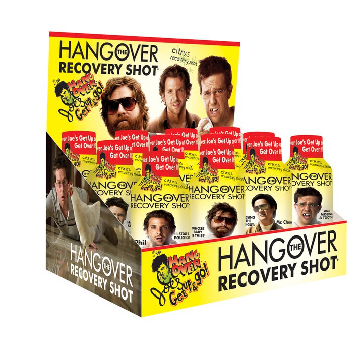 Hangover Joe’s is the nation’s leading hangover recovery shot. Since the release of The Hangover movie-themed version of the hangover recovery shot, Hangover Joe’s Get Up & Go has been landing on counters all over the USA.